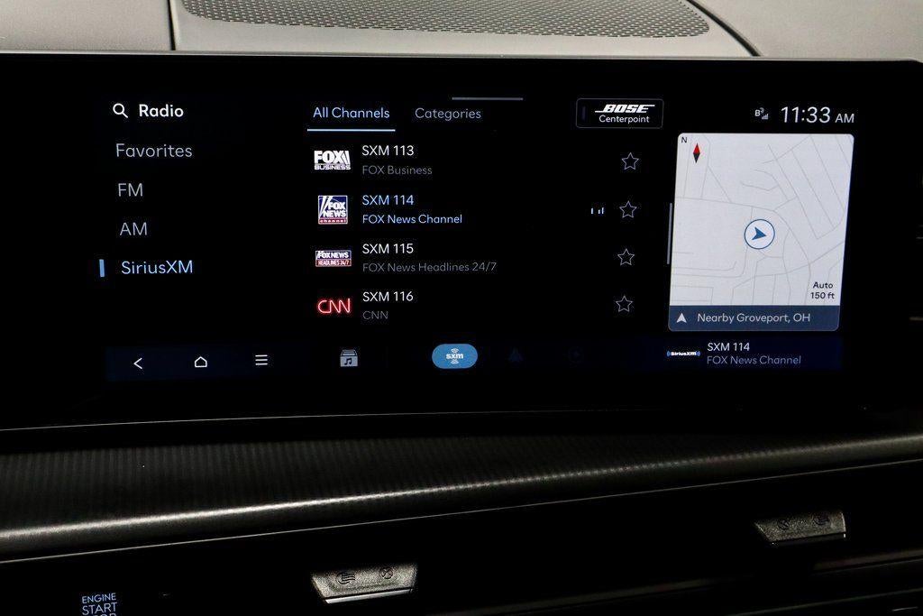 - Radio: AM/FM/HD Bose Premium Audio System -inc: 12 speakers including subwoofer, external amplifier, 12.3" wide touchscreen, Apple CarPlay and Android Auto, Bluetooth® hands-free w/wireless audio streaming, dynamic voice recognition, USB connectivity, SiriusXM, Blue Link connected car system, over-the-air updating capability, navigation system including traffic flow w/incident data via HD Radio (HERE) and rear seat quiet mode