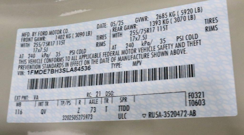 - Tires: P255/75R17 A/T -inc: full size spare tire w/TPMS