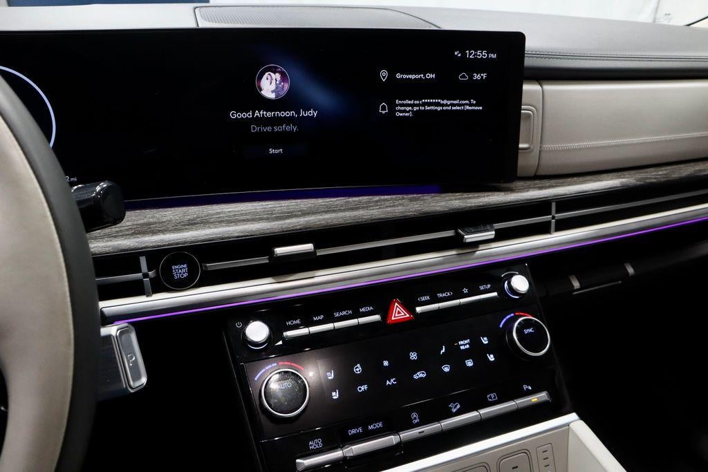 - Radio: AM/FM/HD Bose Premium Audio System -inc: 12 speakers including subwoofer, external amplifier, 12.3" wide touchscreen, Apple CarPlay and Android Auto, Bluetooth® hands-free w/wireless audio streaming, dynamic voice recognition, USB connectivity, SiriusXM, Blue Link+ connected car system, navigation system including traffic flow w/incident data via HD Radio (HERE) and rear seat quiet mode