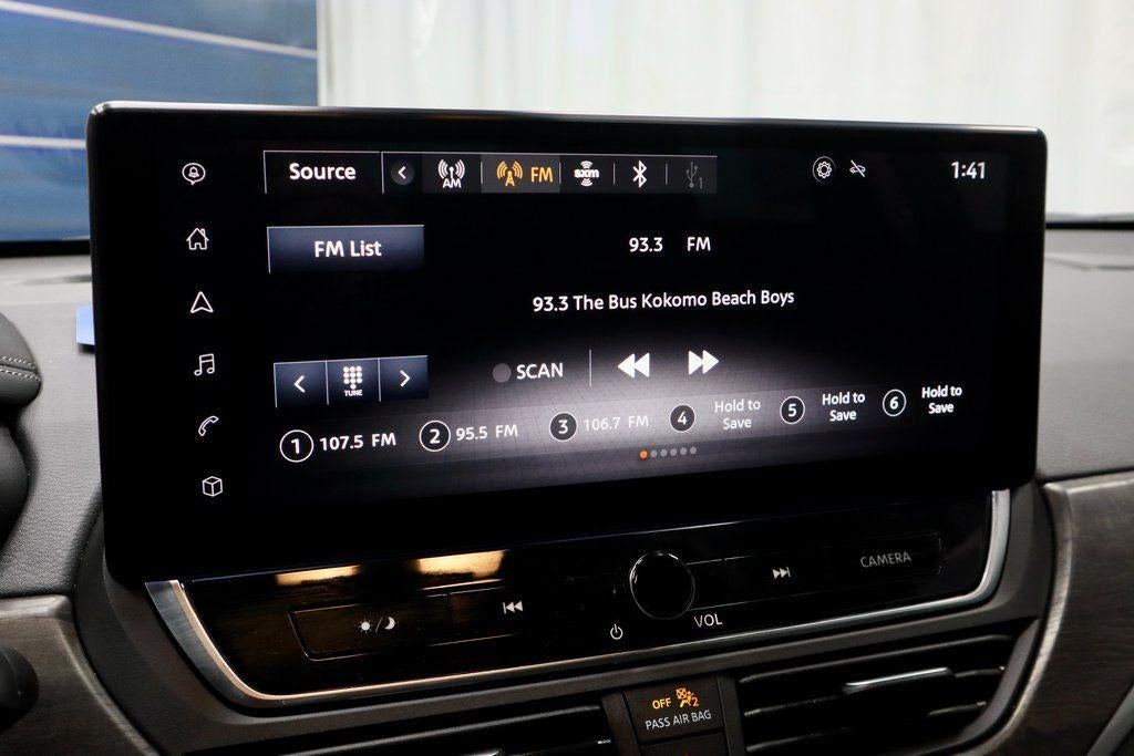- Radio: AM/FM w/Bose Premium Sound System -inc: RDS, MP3, 9 speakers, NissanConnect Services powered by SiriusXM, Wi-Fi hotspot, NissanConnect featuring 12.3" HD color display w/multi-touch control, Nissan door to door navigation, wireless Apple CarPlay and Android Auto, premium traffic and MapCare w/complimentary trial, SiriusXM Traffic, SiriusXM Travel Link, wireless phone charging pad, SiriusXM radio, 2 front illuminated USB ports (1 type-A and 1 type-C) for compatible devices, Bluetooth® hands-free phone system, streaming audio via Bluetooth®, hands-free text messaging assistant, Siri Eyes Free, Google Assistant voice recognition, Amazon Alexa built-in and virtual personal assistant (VPA)